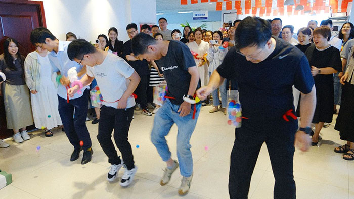 接著近半年入職的小伙伴們輪流登臺(tái)做自我介紹,并分隊(duì)開始進(jìn)行丟沙包。這邊用力擲出,那邊左閃右避,不時(shí)做出高難度跳躍動(dòng)作。觀眾們的加油聲高過一陣又一陣,現(xiàn)場洋溢著青春活力氛圍。
